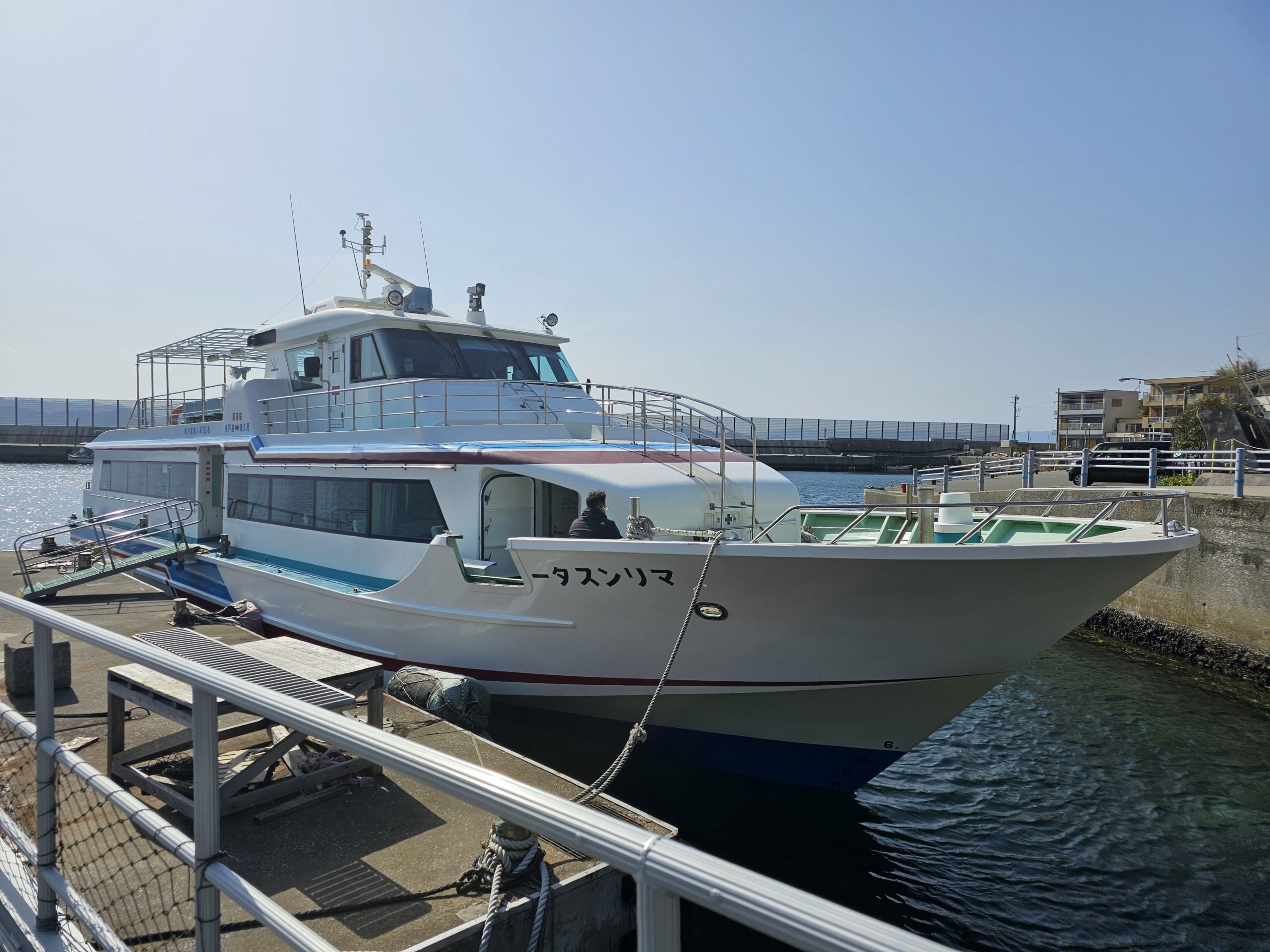 津久見港から定期船で25分ほどで到着します。フェリータイプではないので、車は持ち込めません。