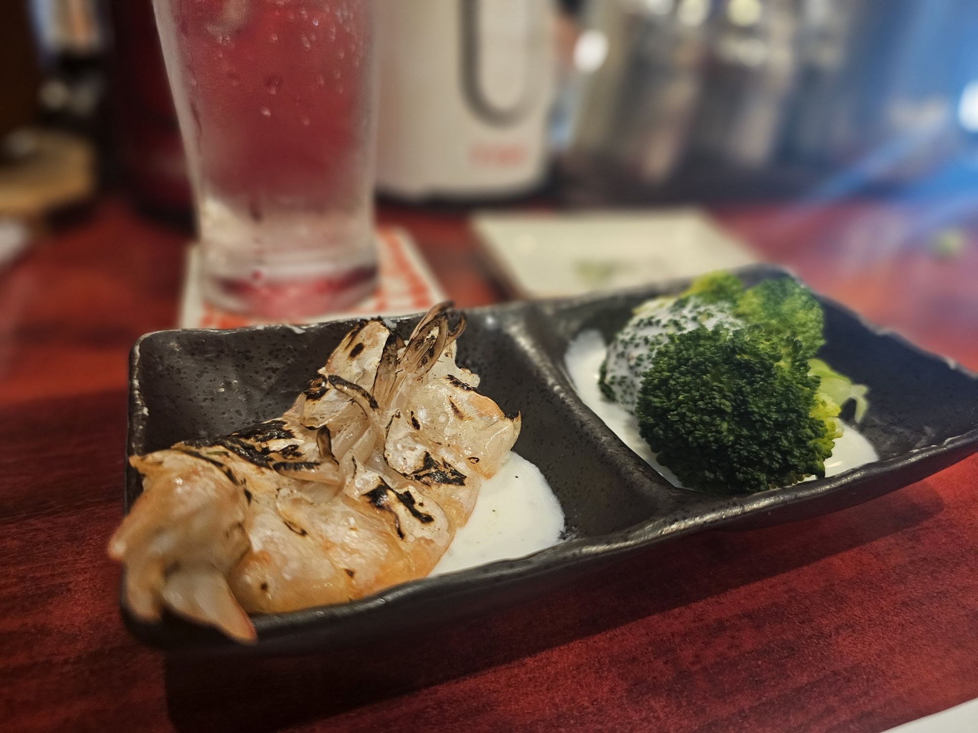 お通しは大体固定。ブロッコリーと焼いたエビにシーザードレッシングがついてきます!