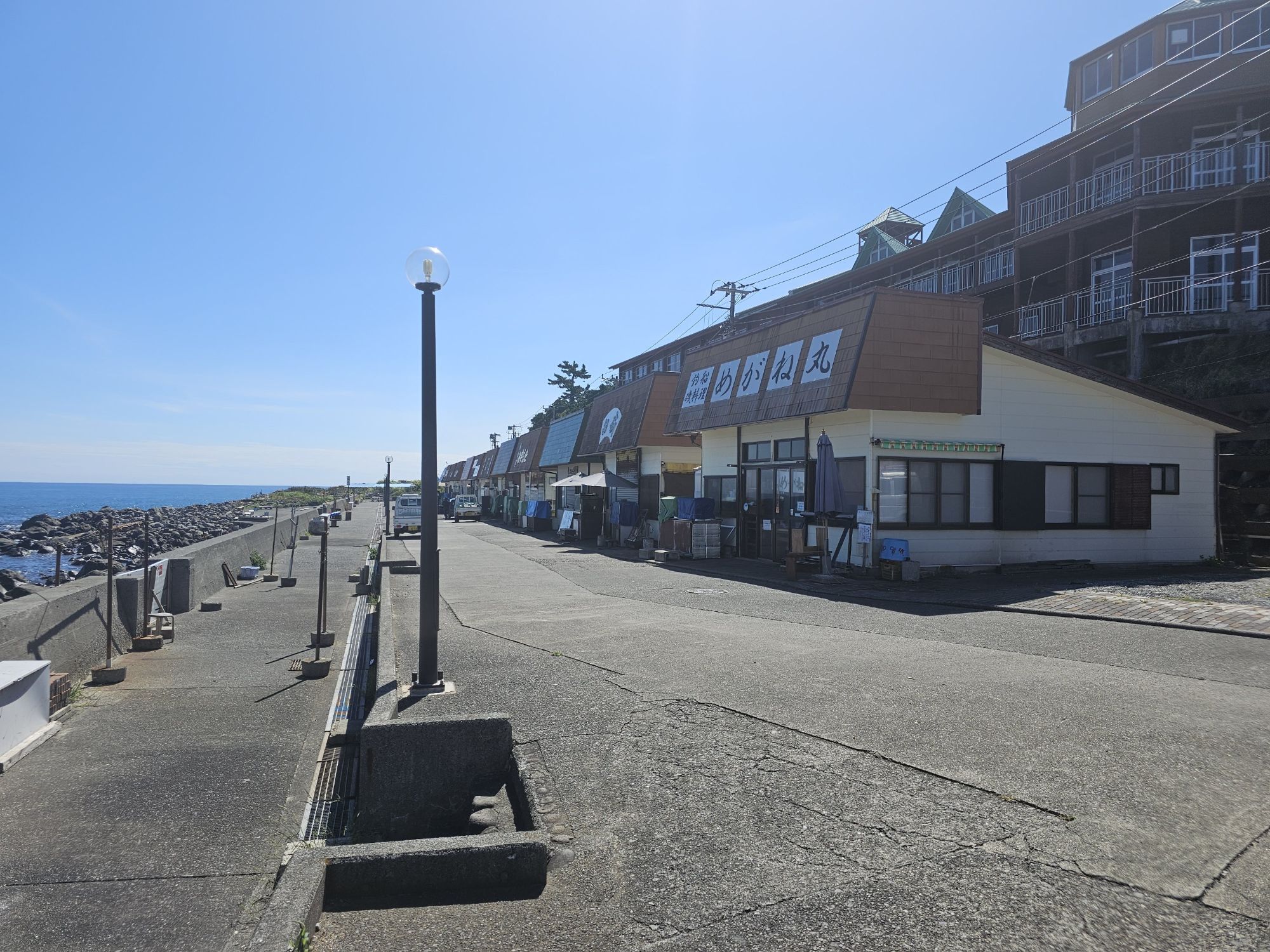 船が入るここの港の中が風もなく、安全にシュノーケリングできるスポットになっています。港から左側へと少し歩くと、食堂街。平屋建ての食堂が並んでいます。