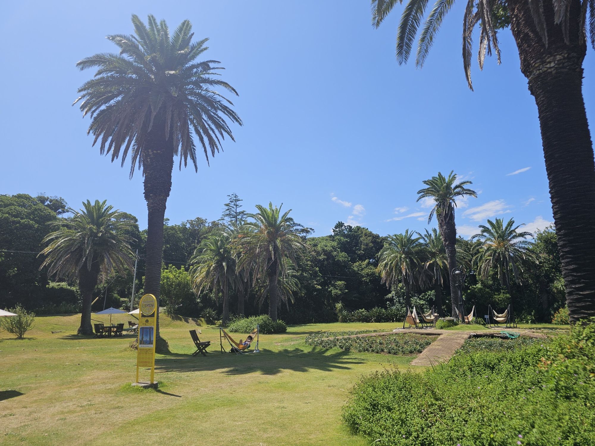 ヤシの木が植えられ、南国感に満ち溢れていますよ!せっかくなので、海を眺めながらお風呂に入りました!