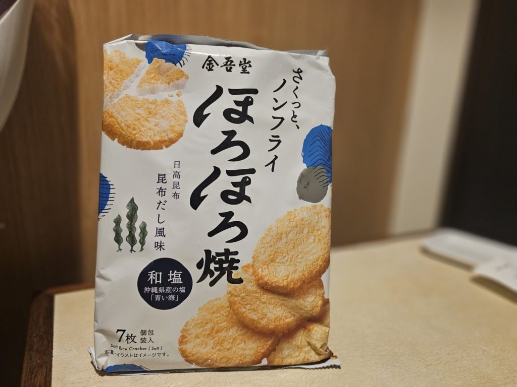 意外と塩味は強いですね!割としっかりコメの旨みと風味も感じられるせんべいですね。
