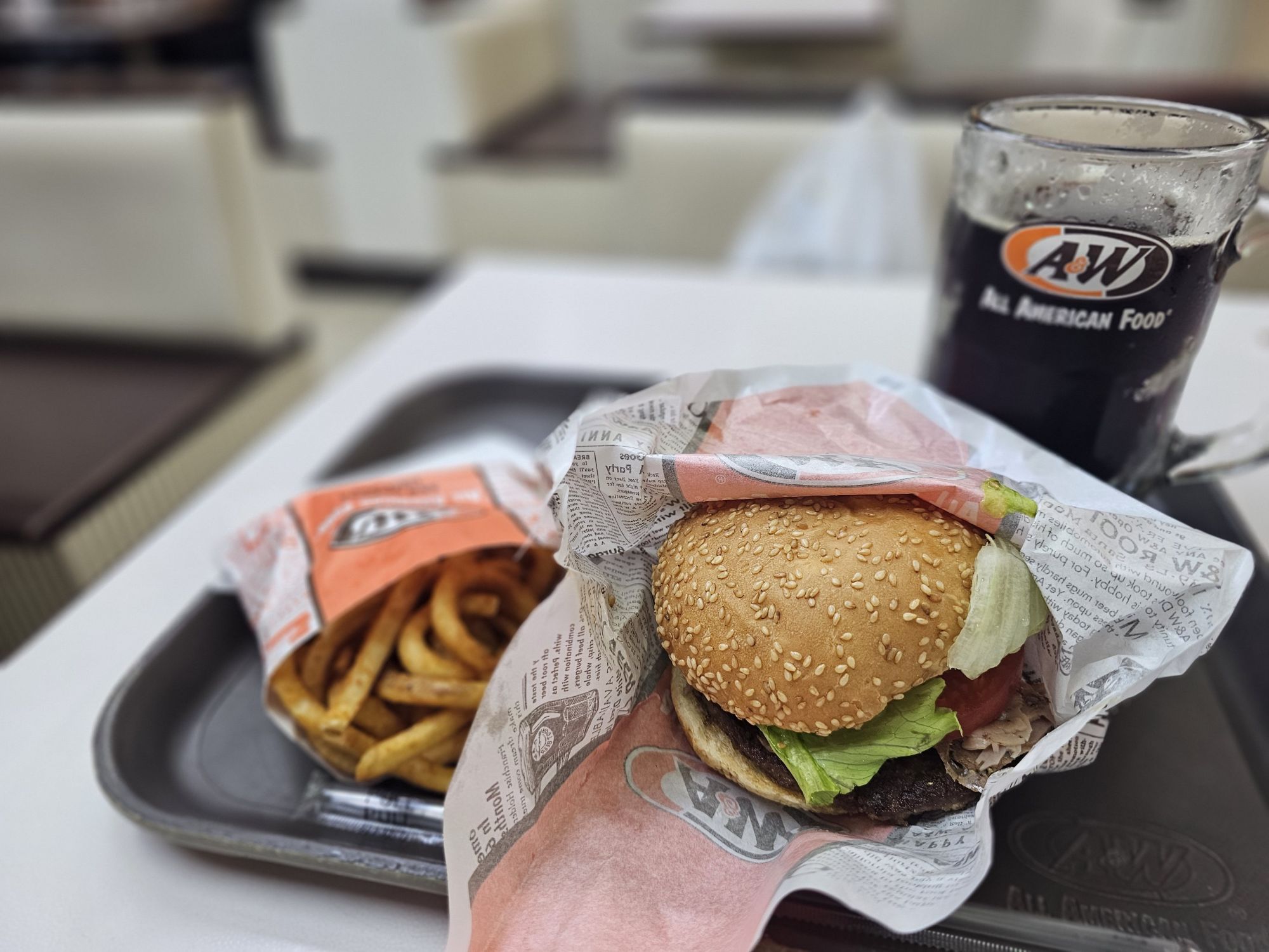今回いただくのは、A&WのA&Wバーガーコンボです!!伺ったのは石垣島の店舗ですね。