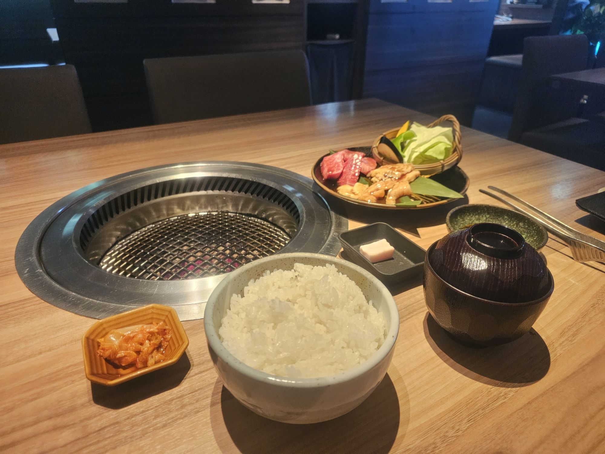 まじで綺麗な焼肉。よこは牛脂。なぜ写りこませたのかはとても不思議です。旅行中のテンションってわからん。笑