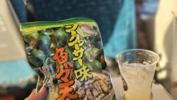 島料理紹介 シークヮーサー味魚々天レビュー!! こんばんにちは!酒人です!!今回いただくのは、シークヮーサー味魚々天です! 意外と魚の旨味と甘みが強いです。 シークワーサーはほのかに香る程度。サクサクだけかと思いきや、しっかりと魚の食感も残っています!これは美味い!スナックよりも本格的な... 2025.02.24 島料理紹介